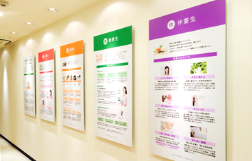 漢方で考える養生のポイントとして「心食動休環」をベースに、自然のリズムに合わせた生活・養生方法や、「春夏秋冬」それぞれの季節ごとの過ごし方やおすすめの食べ物などをパネルにて展示。「漢方」という言葉を聞きなれていない方でも、生活で実践していただけるような内容をご紹介しております。